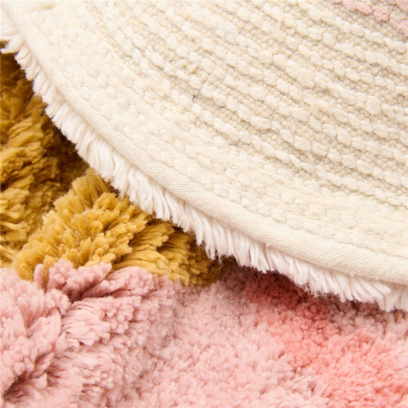 Alfombra de flor fabricada en 100% algodón orgánico y con latex antideslizante en la parte de abajo.