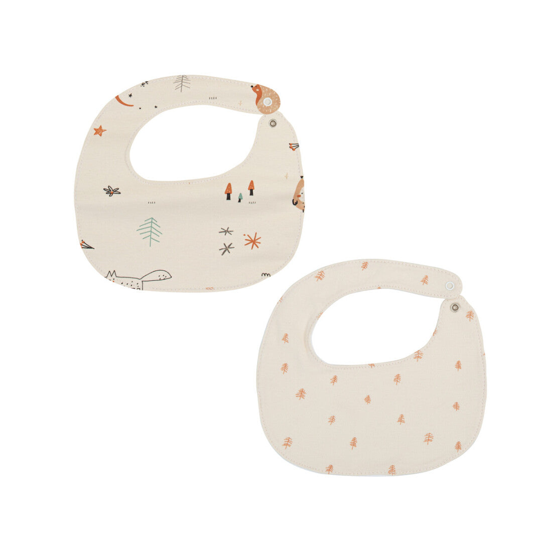 Pack 2 baberos con bonito estampado de la colección Wondeland, ideal para los primeros meses y combinar con el resto de textiles de la colección.