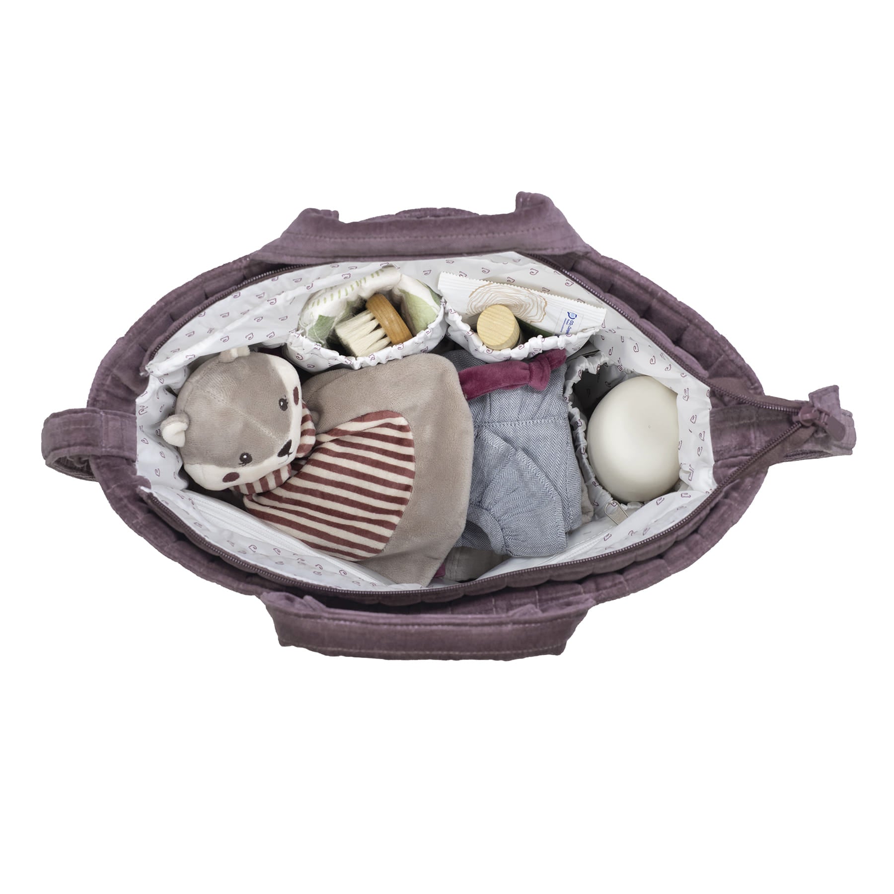 La bolsa para carrito de bebé o el bolso para silla de paseo Cherry Velvet de Pasito a pasito es un modelo único, elaborado en un tercipelo de algodón 100%. Su tratamiento waterproof la hace resistente al agua, garantizando protección y durabilidad en el día a día. Es un diseño muy elegante y práctico que ofrece gran capacidad para que puedas llevar de todo. Viene acondicionado con doble asa, una larga para colgar en el hombro y unas cortas de mano. Incluye asas adicionales universales para colgarla al cochecito. Además, puedes usarla para guardar tus cosas y así evitas llevar dos bolsas al mismo tiempo. Si estás en la dulce espera puedes tenerla preparada como bolsa del bebé para el hospital. Acabados de calidad. La bolsa canastilla de bebé cuenta con un forro interior y bolsillos para colocar de forma organizada el biberón, cubiertos, toallitas, pañales, cremas y cualquier otra cosa que necesite tu hijo. Entre los bolsillos hay un bolsillo térmico para biberones y un bolsillo plastificado para la ropa mojada. Incluye cambiador. Está fabricado con materiales de gran calidad, libres de colorantes azoicos, ftalatos y sustancias nocivas para la salud. Además, se puede lavar a mano o a máquina a temperaturas de hasta 30º.