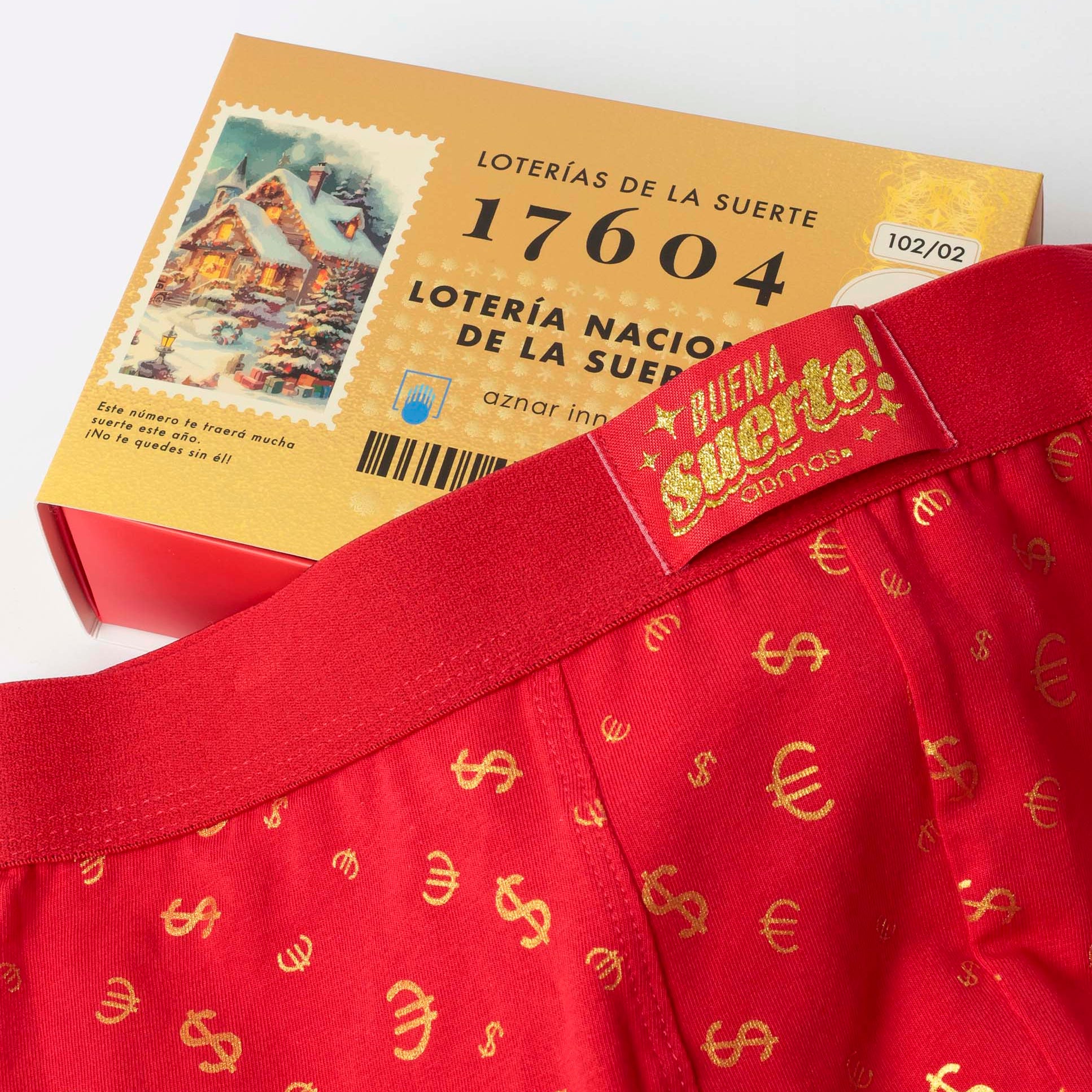 Boxer estampados con motivos navideños y caja de regalo imitando un boleto de lotería. Confeccionados en un suave y resistente tejido de punto, garantizan comodidad todo el día durante las fiestas. Ideal para regalar en estas fiestas o en un amigo invisible.