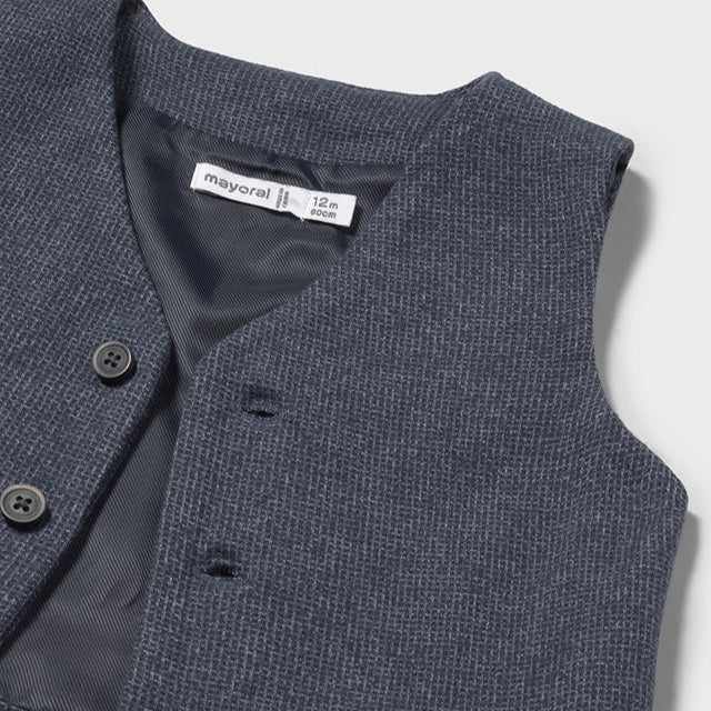 Chaleco para bebé. Modelo con cuello de pico. Cierre con botones en la parte delantera..