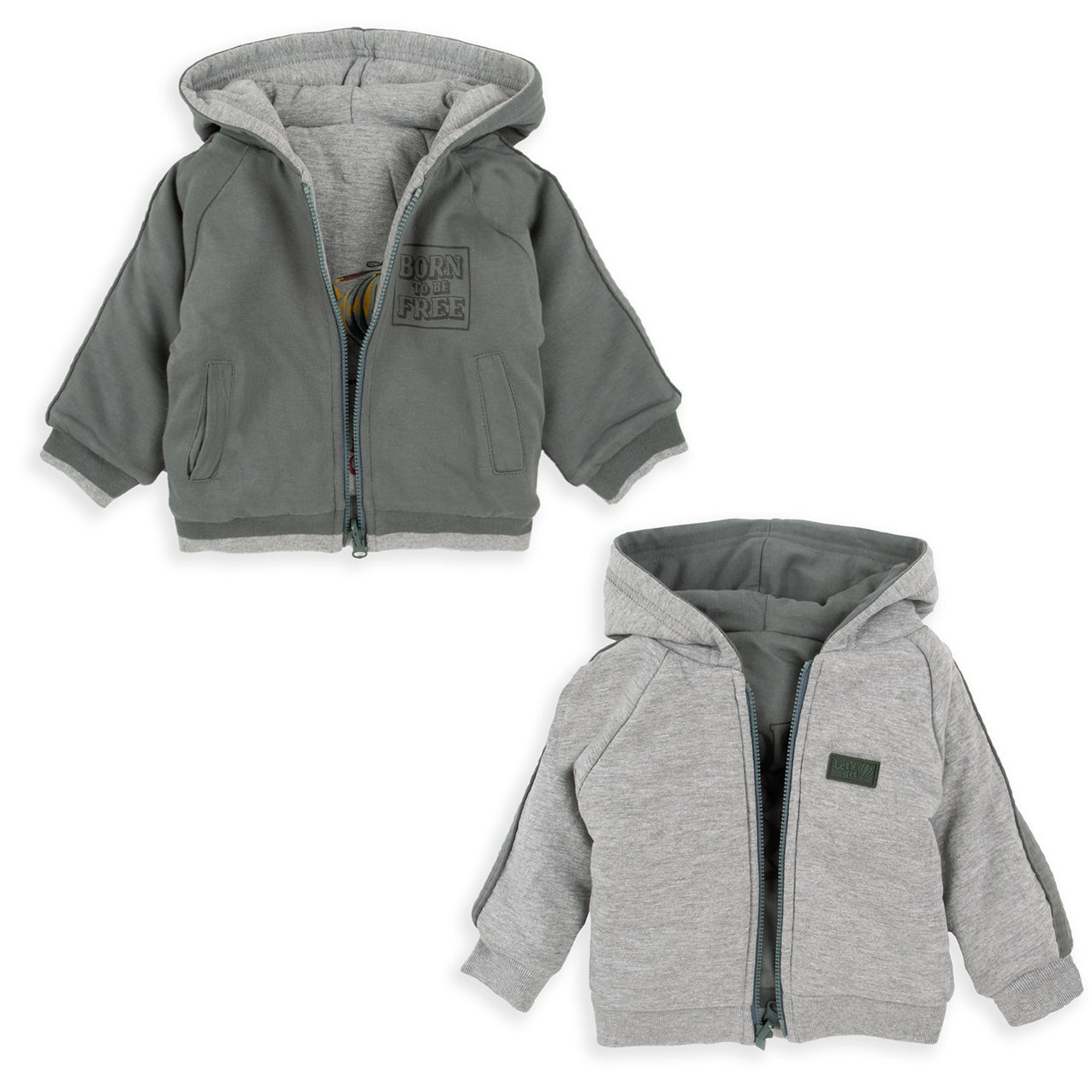 Chaqueta de niño reversible en color verde y gris.