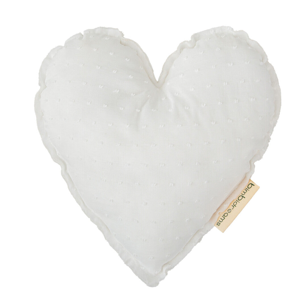 Cojín decorativo con forma de conrazón en plumeti blanco de Bimbidreams.