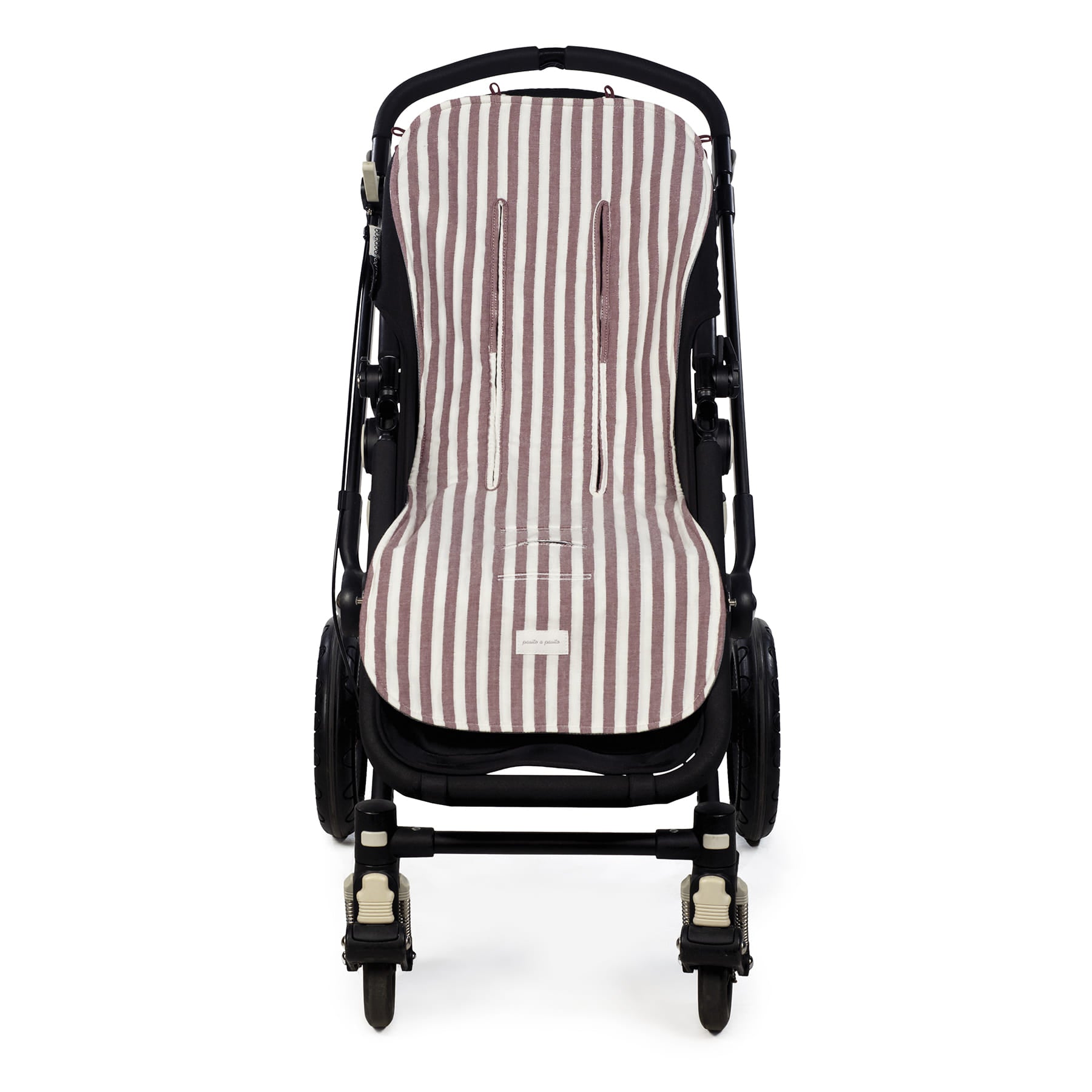 La colchoneta Cherry rayas de Pasito a pasito en tejido de algodón estampado es la cobertura ideal que se adapta a la mayoría de las sillas de paseo y darle mayor comodidad a tu hijo durante sus paseos en días calurosos. Está diseñada en el respaldar con una capa de tejido en material transpirable que aísla la humedad y evita la sudoración excesiva del bebe, protegiendo la silla para hacer el paseo más confortable. Este modelo está pensada para adaptarla a la mayoría de las sillitas de paseo ya que dispone de varias aperturas (ojales) y ajustes para cubrir la superficie donde se recuesta el bebé. Acabados de calidad. Todas nuestras fundas están fabricadas conforme a las más exigentes normativas europeas, con materiales de gran calidad, libres de colorantes azoicos, ftalatos y sustancias nocivas para la salud. Tela de fácil limpieza, se recomienda lavar a máquina a 30º.