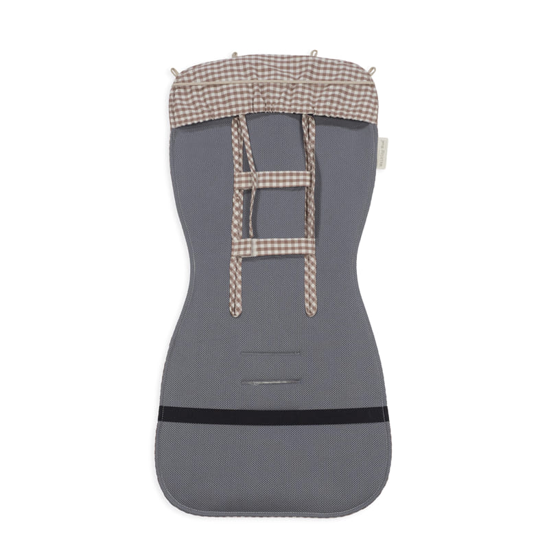 La colchoneta para silla de paseo Praliné Vichy Moka es el forro ideal para cubrir el asiento de tu bebé durante el verano, protegiendo su piel de las rozaduras e irritaciones del calor y además mantienes el tapizado original como nuevo. Está elaborada con un material transpirable que ayuda a prevenir la sudoración excesiva del bebé y protege la sillita haciendo el paseo más confortable. Su esquema de uso universal te permite adaptar el colchón a la mayoría de las sillas de paseo, y dispone de varias aperturas (ojales) y ajustes con los que puedes colocarla de forma muy fácil en el asiento del coche. Gran calidad y mucho estilo.