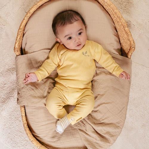 Conjunto primera puesta cuadros amarillo Pequeña Granja
