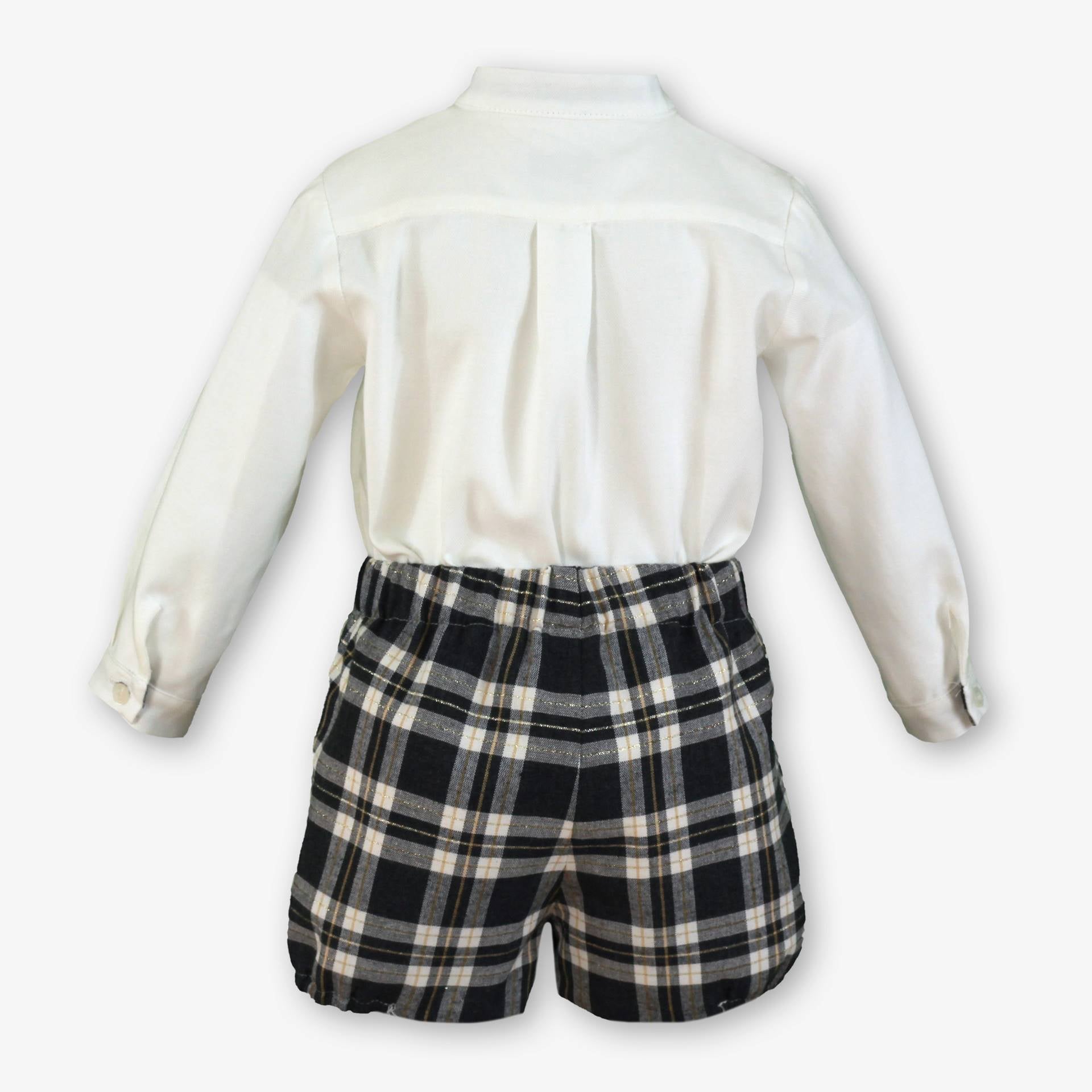 Bonito conjunto de manga larga para bebé de la marca Miranda. Esta confeccionado en algodón en tonos negros y beige.