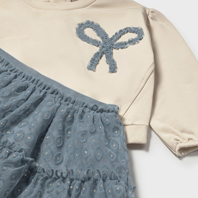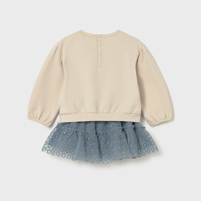 Falda para bebé. Cinturilla elástica. Confección en tejido de tul ligero y vaporoso. Modelo con rizo y volantes.
