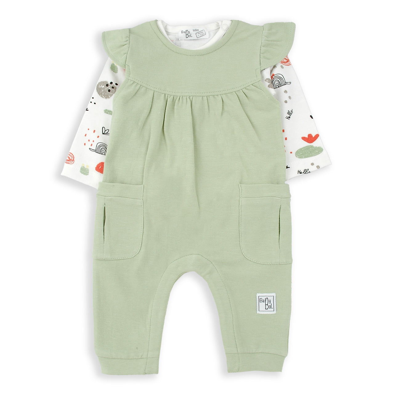 Conjunto de peto y camiseta de manga larga de algodón de la colección Sending love. Es cómodo y confortable para nuestro bebé.