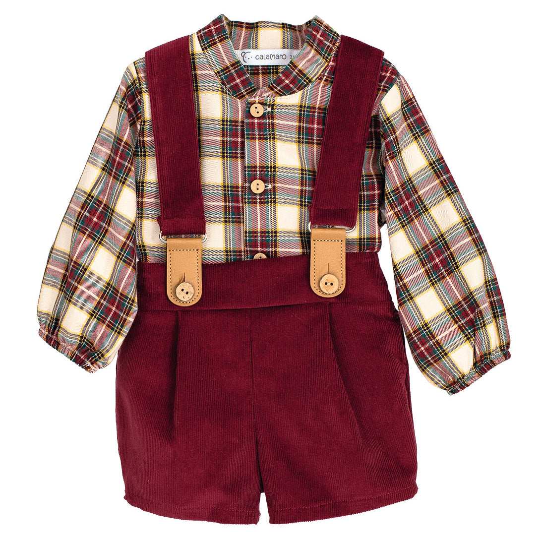 ¡Un look otoñal perfecto para tu bebé! 🍁 Este conjunto está compuesto por una blusita de canalé en color arena y un precioso pololo con tirantes en tejido de cuadros con tonos tierra, verdes y mostaza. Una combinación súper dulce, cómoda y con estilo para los días de otoño e invierno.