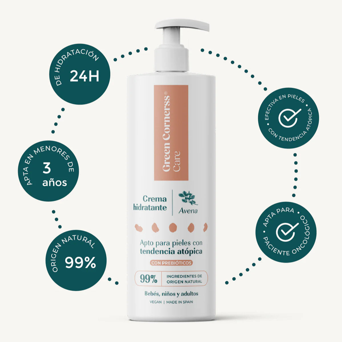 Crema hidratante corporal que va a hidratar en profundidad la piel delicada de bebés, niños y adultos, mientras restaura la función barrera de la piel. Contiene extracto de avena, aloe vera y manteca de karité, entre otros, que aportan a la piel propiedades calmantes y regeneradoras. Ayuda a distanciar la presencia de brotes en pieles con dermatitis atópica.