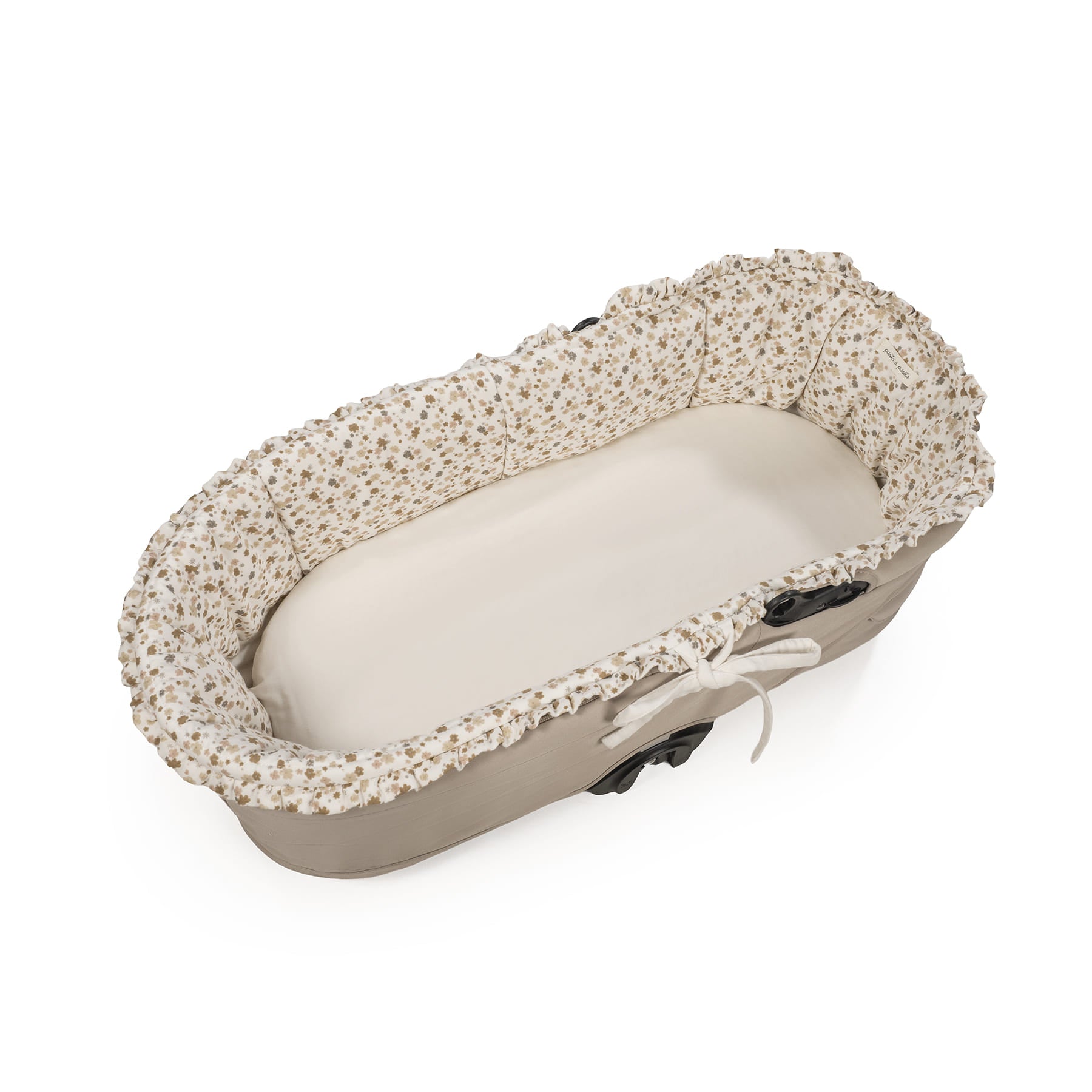 El cubre cuco con varillas y sábana bajera ajustable Somerset de Pasito a Pasito es el complemento perfecto para aportar suavidad y elegancia al capazo de tu bebé. Fabricado en algodón 100%, garantiza un tacto delicado y transpirable, ideal para la piel sensible del recién nacido. El cubre capazo con varillas se ajusta perfectamente al interior del capazo. Su diseño ajustable con lazos garantiza una perfecta adaptación al cuco proporcionando un acabado envolvente y seguro con un diseño encantador de estampado flores. La sábana bajera ajustable, confeccionada en muselina 100% algodón, ofrece una suavidad excepcional y transpirabilidad óptima, asegurando el confort del bebé en todo momento. Compatible con la mayoría de los capazos. Este conjunto es ideal para mantener a tu bebé cómodo y protegido, con el estilo y calidad que caracteriza a Pasito a Pasito.