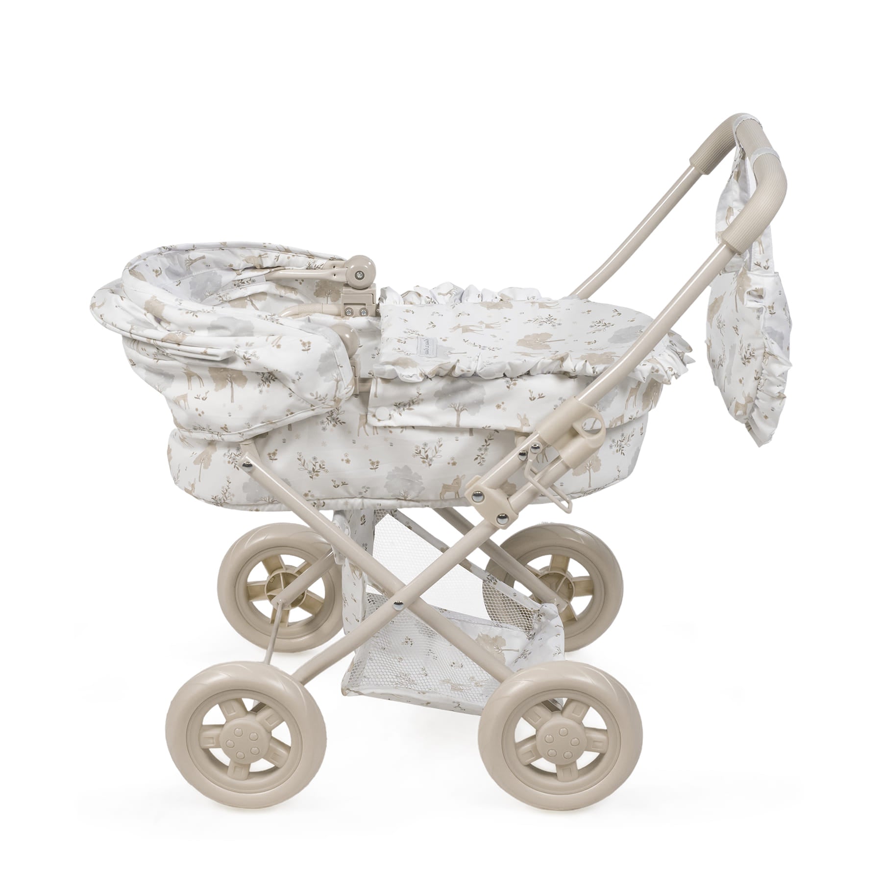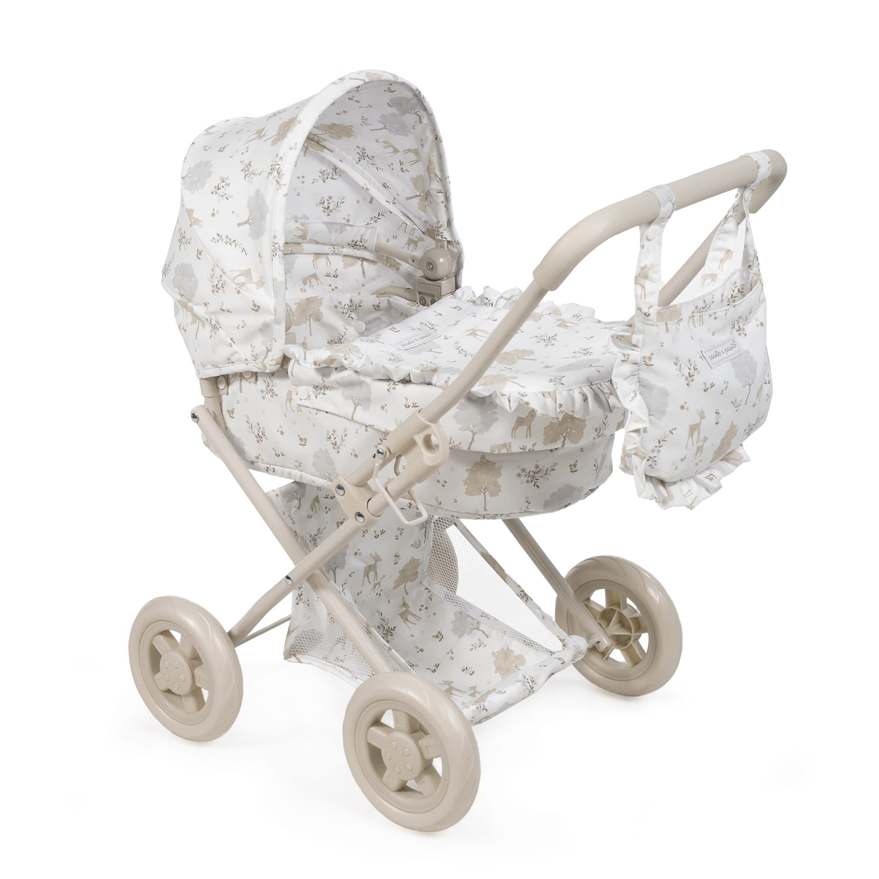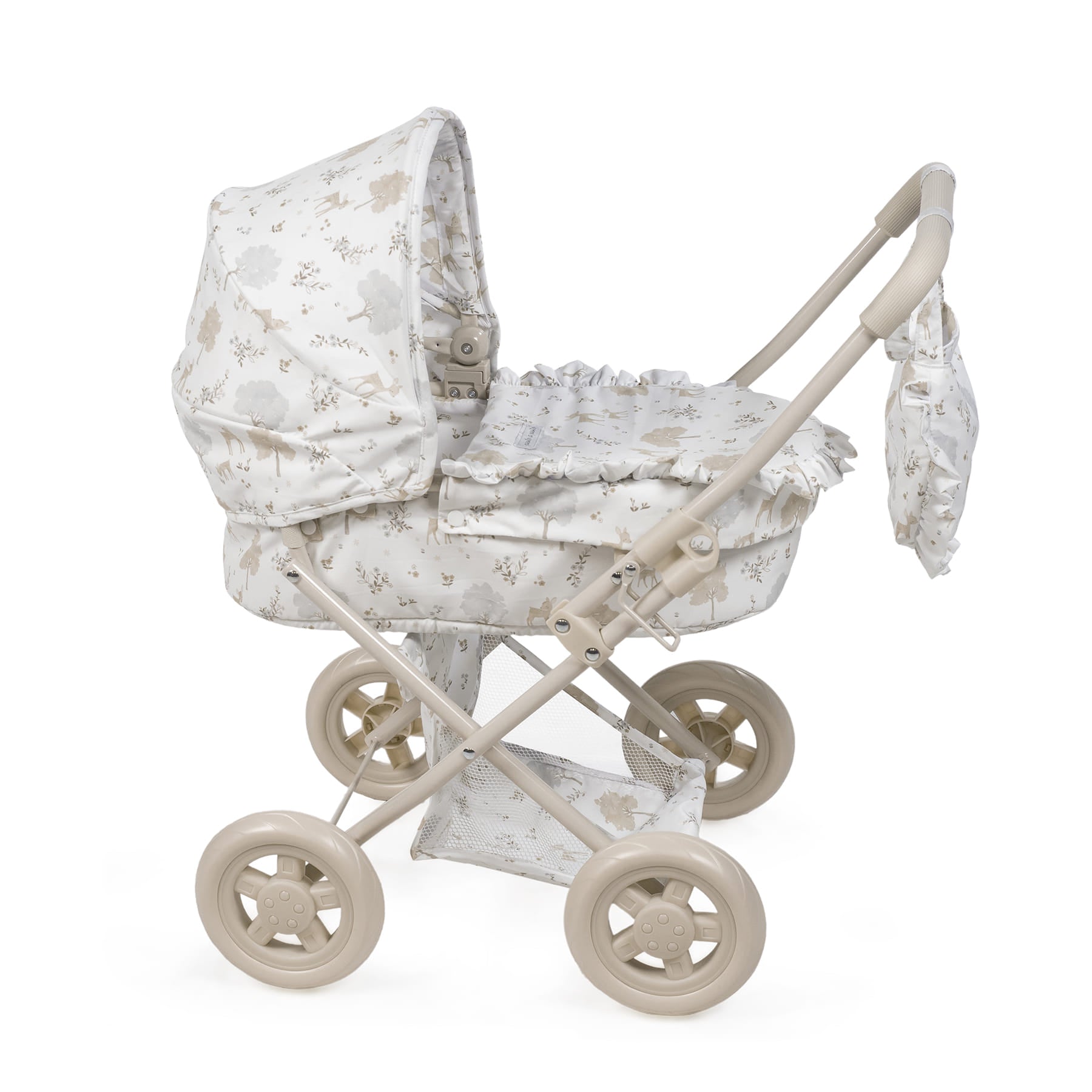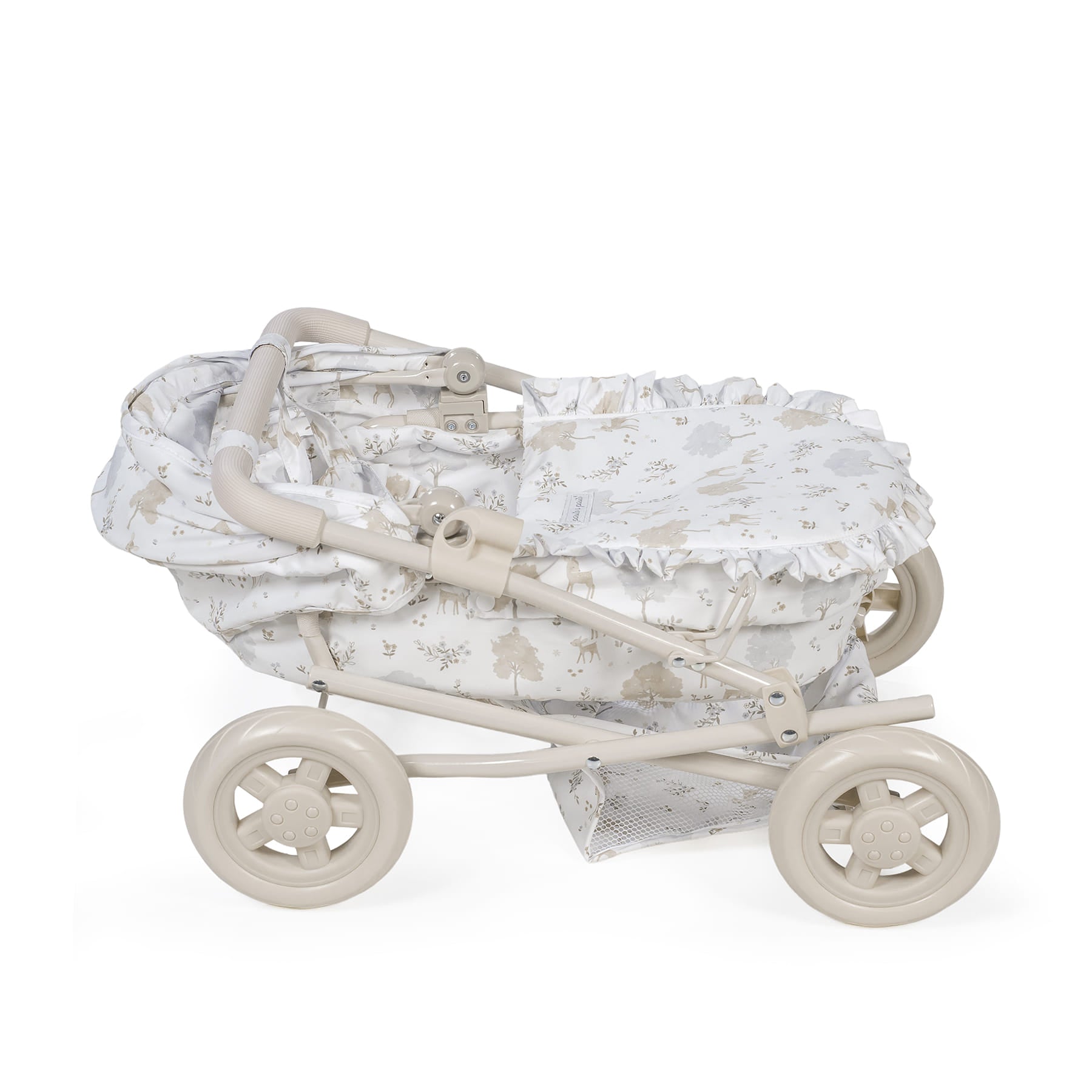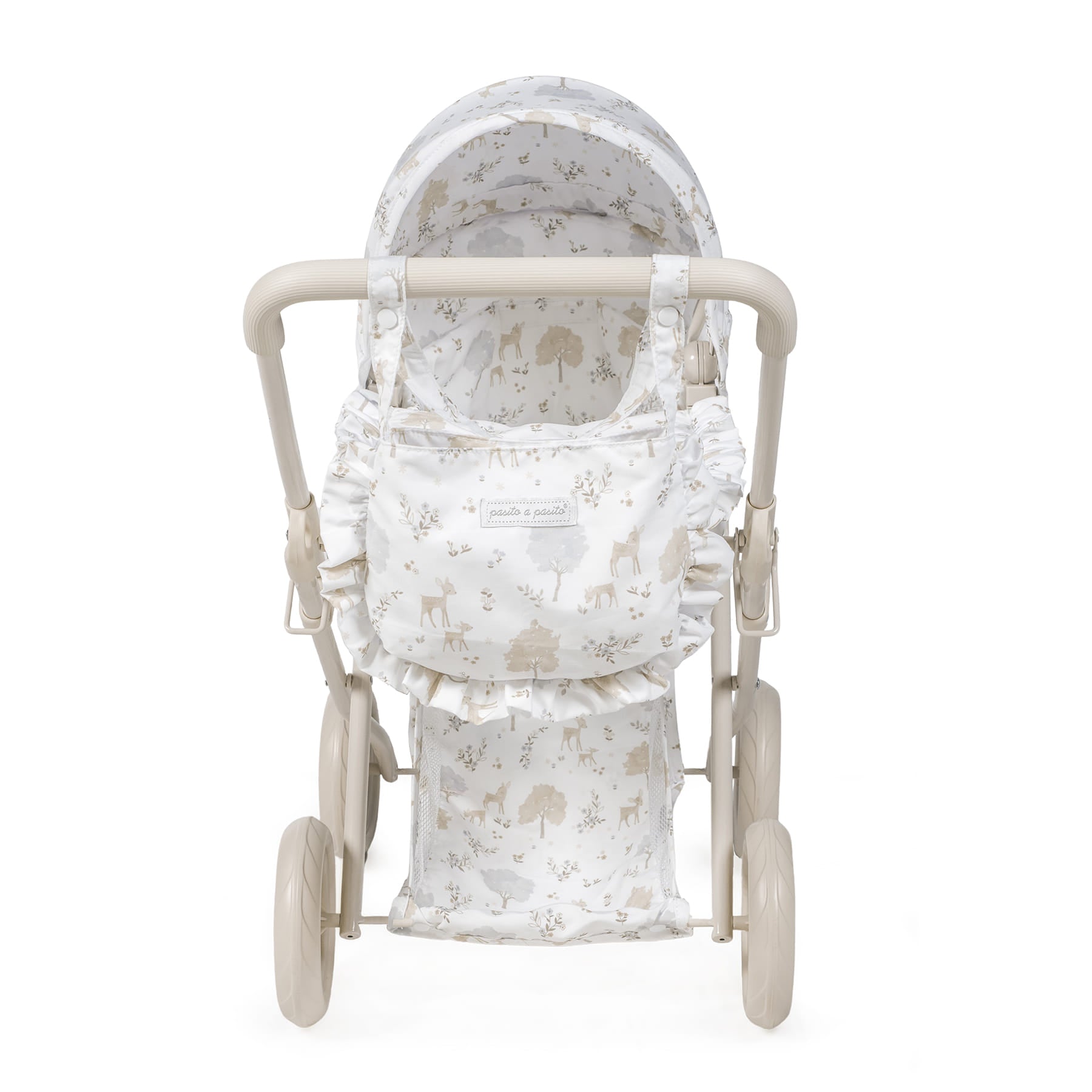 Estampado «Nara» exclusivo: el carrito destaca por su tierno y delicado estampado de cervatillos en tonos beige, característico de la popular colección Nara de Pasito a Pasito. Un diseño atemporal que aporta un toque de dulzura a cada paseo. Detalles encantadores: incluye volantes y acabados impecables que lo hacen lucir como un cochecito de bebé real, fomentando un juego de imitación más inmersivo y divertido. Plegable y fácil de guardar