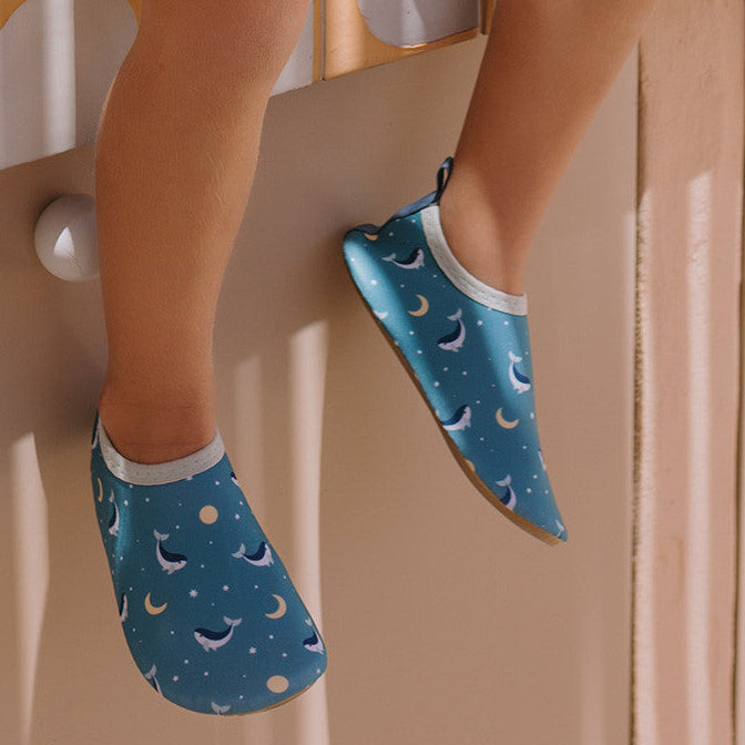 Completa el look veraniego de tu peque con los escarpines Whale Teal de Monnëka Verano 2026