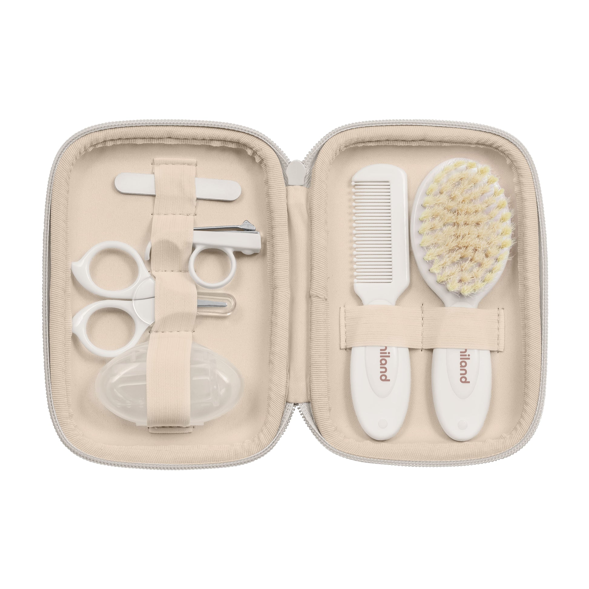 Tiene 6 accesorios esenciales para el cuidado y la higiene de los más pequeños de la casa. Este completo set se compone de los elementos imprescindibles en el cuidado del día a día del bebé: un peine, un fantástico cepillo, unas prácticas tijeras, un cepillo de dientes de dedal de silicona, un corta uñas y unas limas para las uñitas del bebé. Su simpático diseño lo convierte en el kit ideal para regalar.