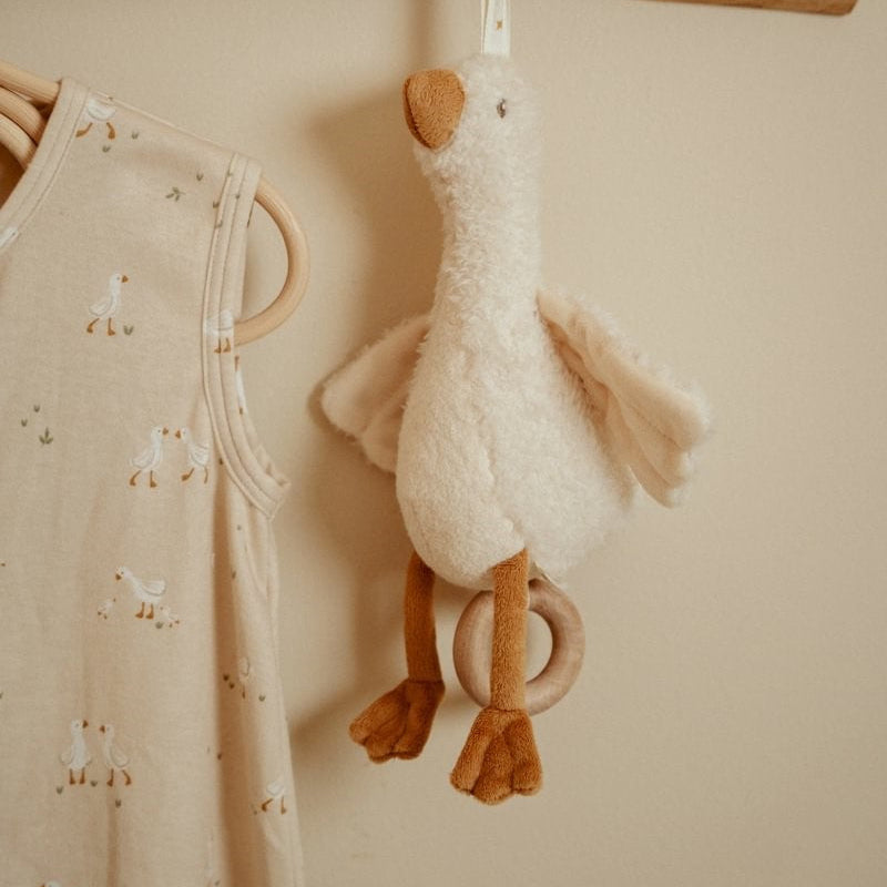 Tira suavemente de la cuerda y deja que la Cajita Musical de la oca toque una dulce melodía. Los tonos relajantes ayudan a tu pequeño a relajarse y hacen que la hora de dormir sea aún más reconfortante. Su diseño acogedor, sus materiales suaves y su práctico sistema para colgarla la convierten en un complemento encantador para la habitación del bebé. ¡Un ritual relajante para dulces sueños! Nota: Este es un artículo decorativo. Mantener fuera del alcance de los niños.ño, brindándole una sensación de seguridad. ¡Que duermas bien, pequeño!