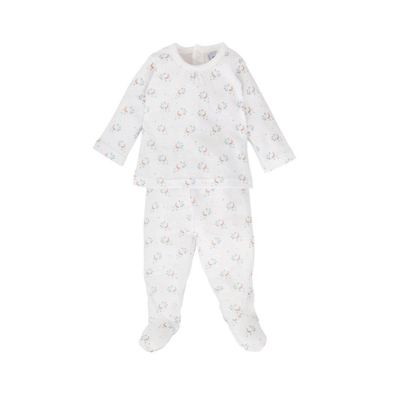 El set pradera de primera puesta de 5 piezas es ideal para dar la bienvenida al recién nacido con suavidad, comodidad y mucho estilo. Confeccionado en algodón 100% suave y transpirable, cada prenda está decorada con un encantador estampado floral en tonos pastel sobre fondo blanco, a juego con el resto de la colección floral de Babidu.