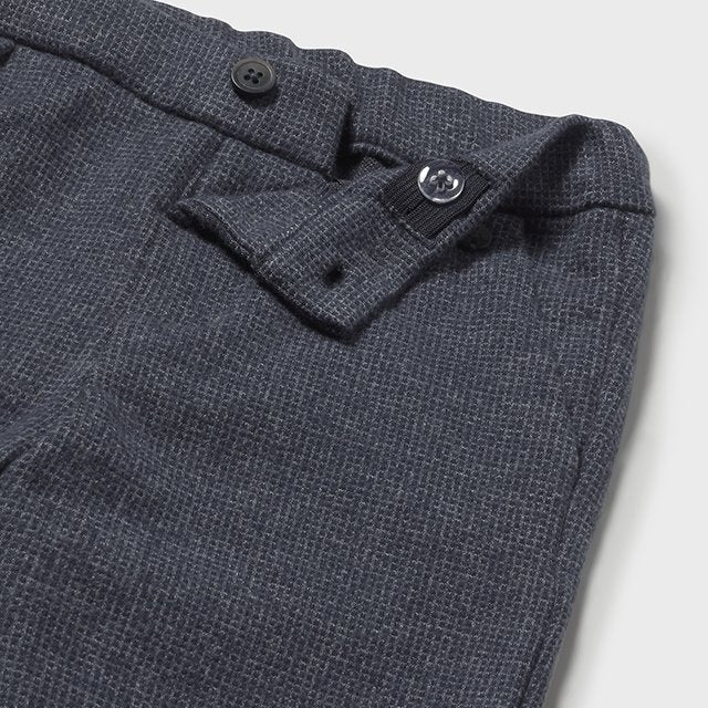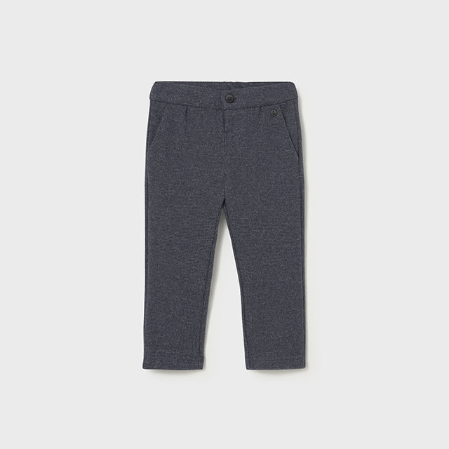 Pantalón largo para bebé de tipo chino, suave y ligeramente elástico. Cierre con un único botón. Goma elástica regulable con botones en el interior de la cinturilla para mayor ajuste. Bolsillos funcionales en la parte delantera.