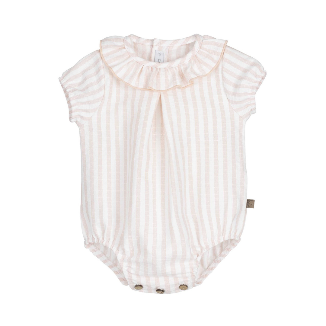 Confeccionado en un tejido suave y ligero, resulta muy agradable para la piel del bebé y permite total libertad de movimiento. Su cierre con automáticos en la parte inferior facilita el cambio del pañal, aportando comodidad tanto al bebé como a los padres.