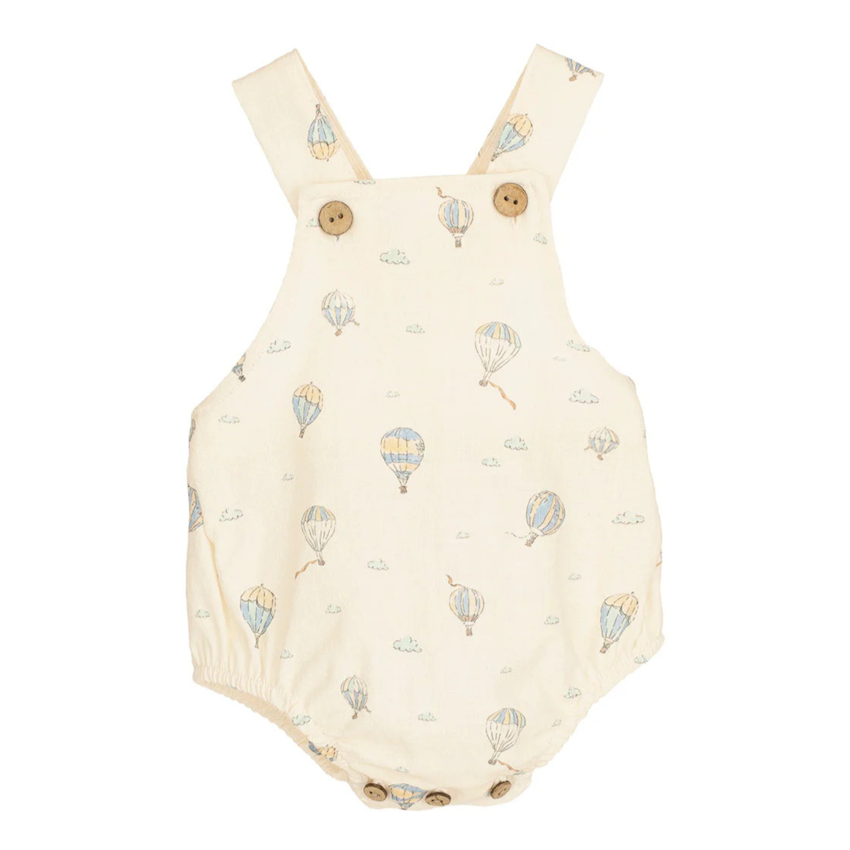Este precioso peto ranita de globos en beige está confeccionado con tejido cálido y suave, ideal para los días fríos. Con tirantes anchos abotonados, goma en los muslos y cierre inferior con botones de madera para facilitar el cambio del pañal. ¡Un fondo de armario atemporal que no pasa de moda!