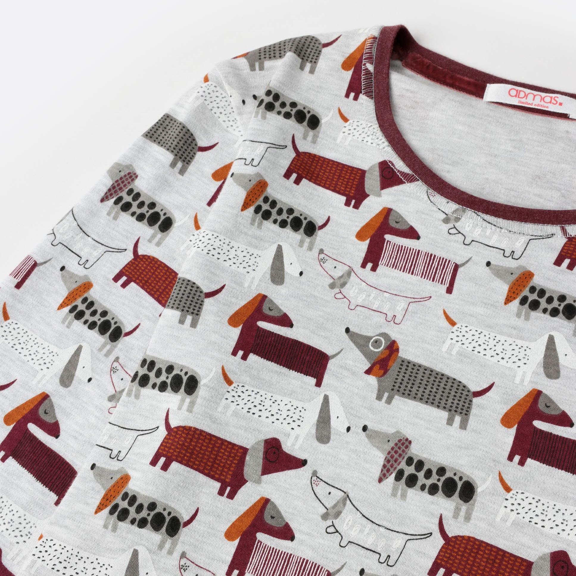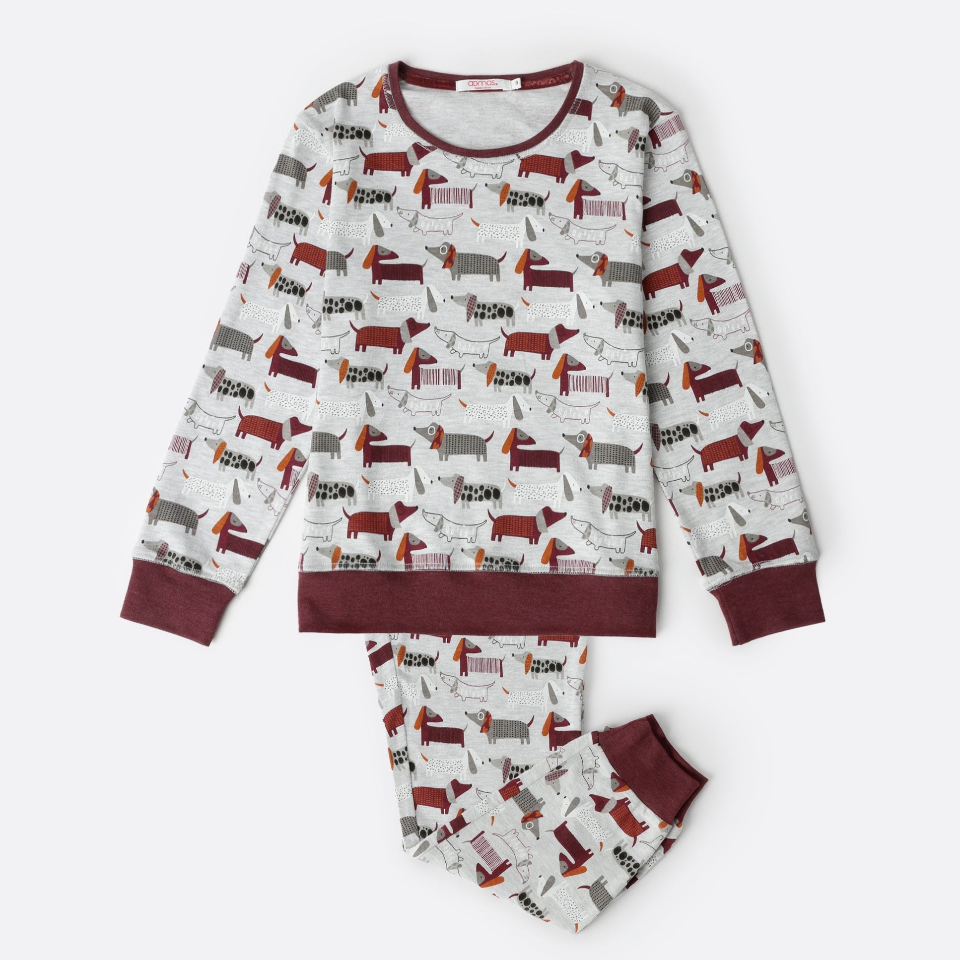 Pijama de punto de algodón vigoré, de manga larga, cuello redondo y pantalón largo.