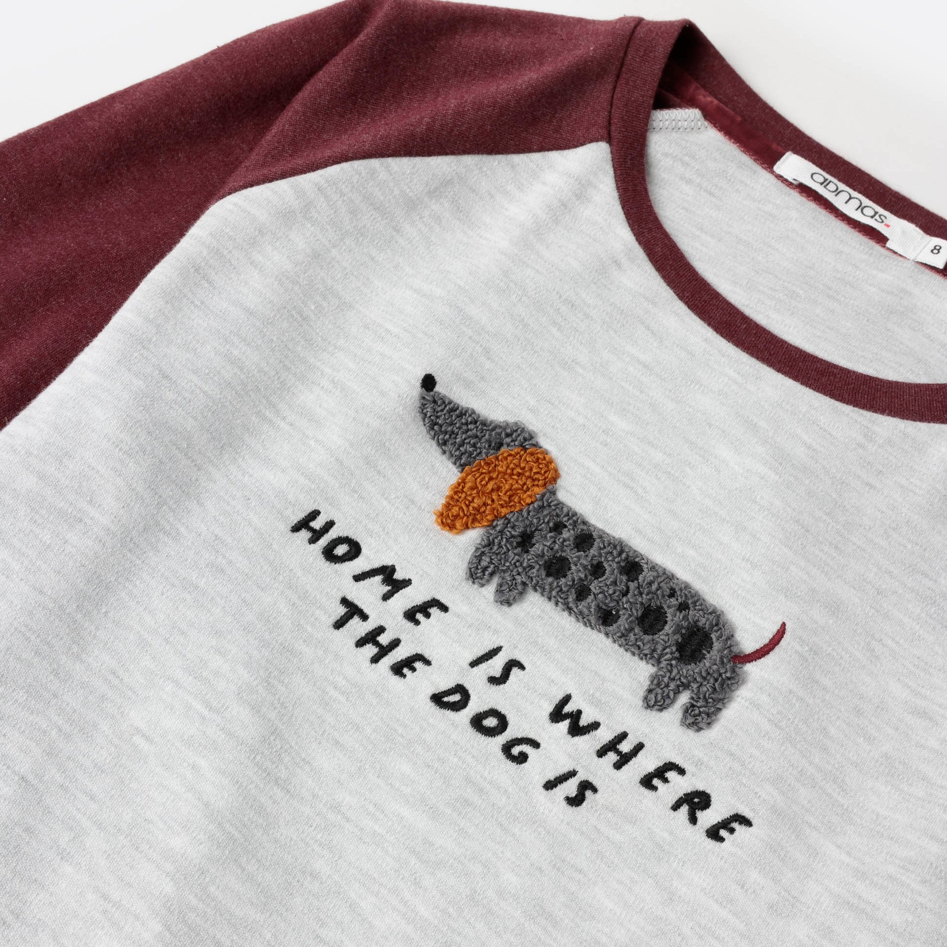 Pijama de punto de algodón vigoré, de manga larga, cuello redondo y pantalón largo.