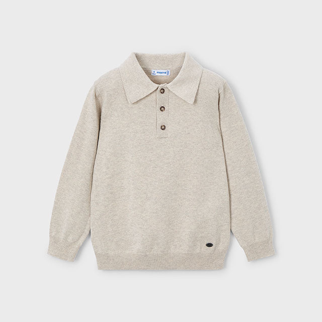 Polo de manga larga para niño. Cuello de polo clásico. Cierre con botones en la parte delantera. Tejido de punto tricotosa de tacto suave y agradable.
