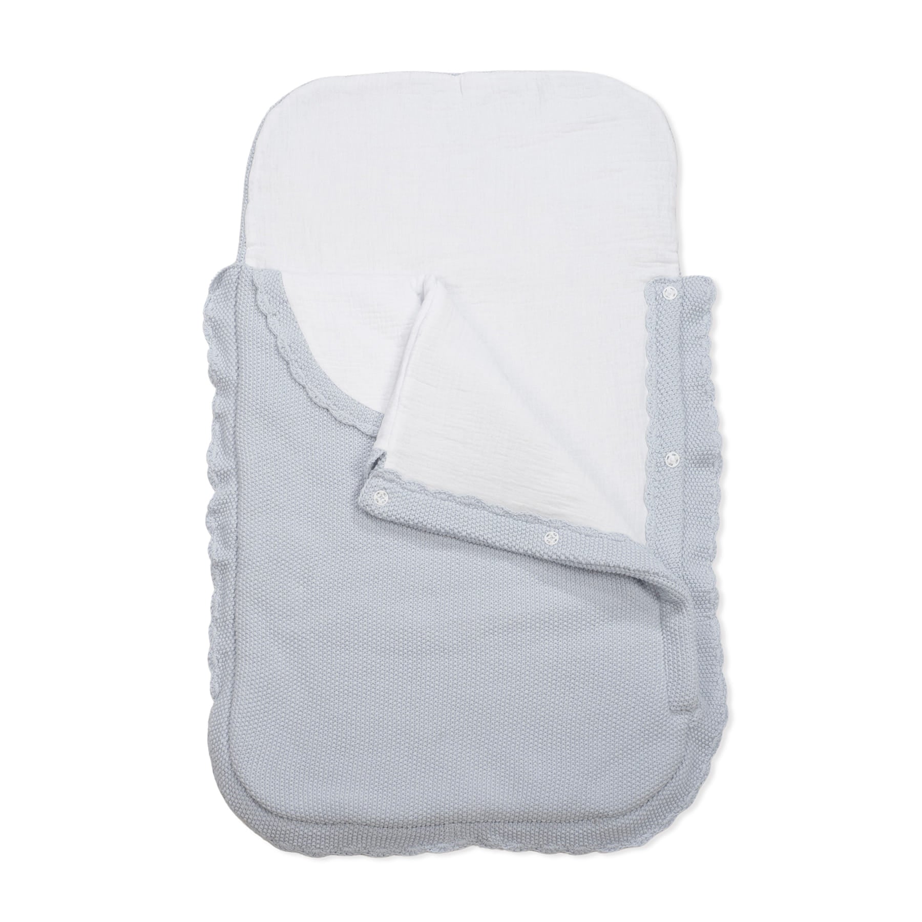 El saco cuco Tricot azul de Pasito a Pasito es ideal para mantener a tu bebé cómodo y protegido en sus primeros días. Con un diseño elegante y delicado en punto de arroz con acabado de crochet en ondas, combina estilo, suavidad y funcionalidad. Materiales 100% algodón. Exterior en tricot y forro interior en bambula lisa para un contacto suave con la piel del bebé. Cierre mediante clips que permite colocar y retirar al bebé sin molestias. Incluye bolsa de hilo con logo, ideal para regalar. Gran calidad y mucho estilo. Todas nuestras fundas están fabricadas conforme a las más exigentes normativas europeas. Certificación SVHC / EN-14362 Azo free libre de sustancias nocivas.