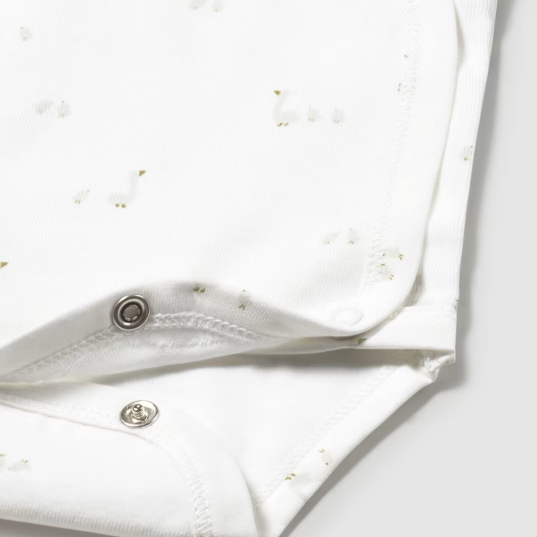 Su diseño cruzado con abertura lateral y botones a presión facilita mucho vestir al bebé, haciéndolo especialmente práctico durante los primeros meses. Además, incorpora automáticos en la entrepierna, lo que permite cambiar el pañal de forma rápida y cómoda.