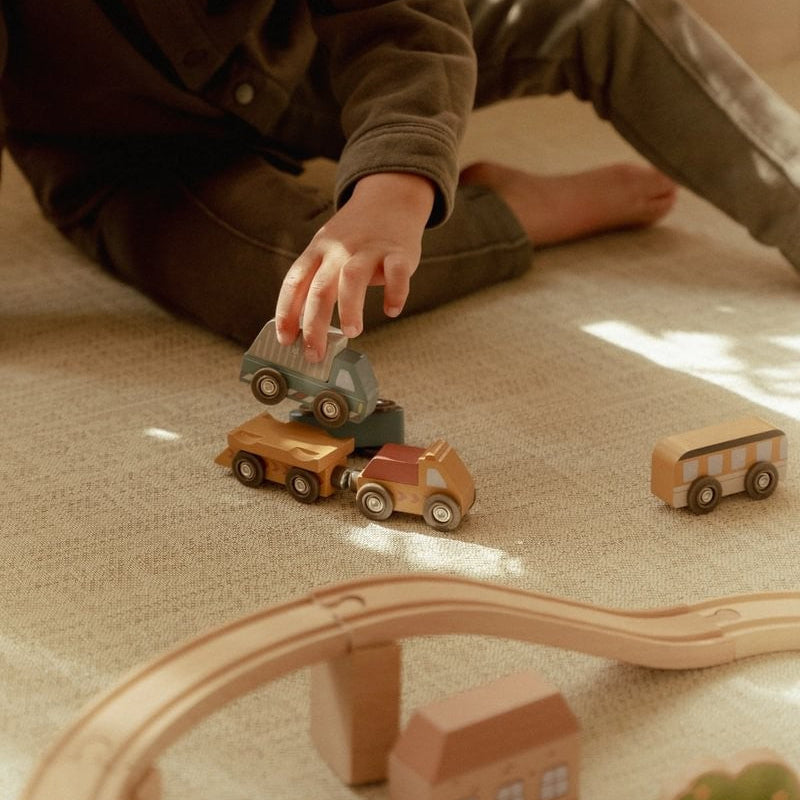 ¡La ciudad siempre está en movimiento! Estos vehículos comerciales y de emergencia de madera están listos para la acción y se desplazan con suavidad sobre los rieles para brindar ayuda donde sea necesario. Envía a los bomberos, haz que la policía patrulle o deja que el camión reparta mercancías. Diseñado para una diversión sin límites con el Little Dutch Railway XL y los sets de expansión. ¡Combínalos y crea tu propia ciudad aventurera!