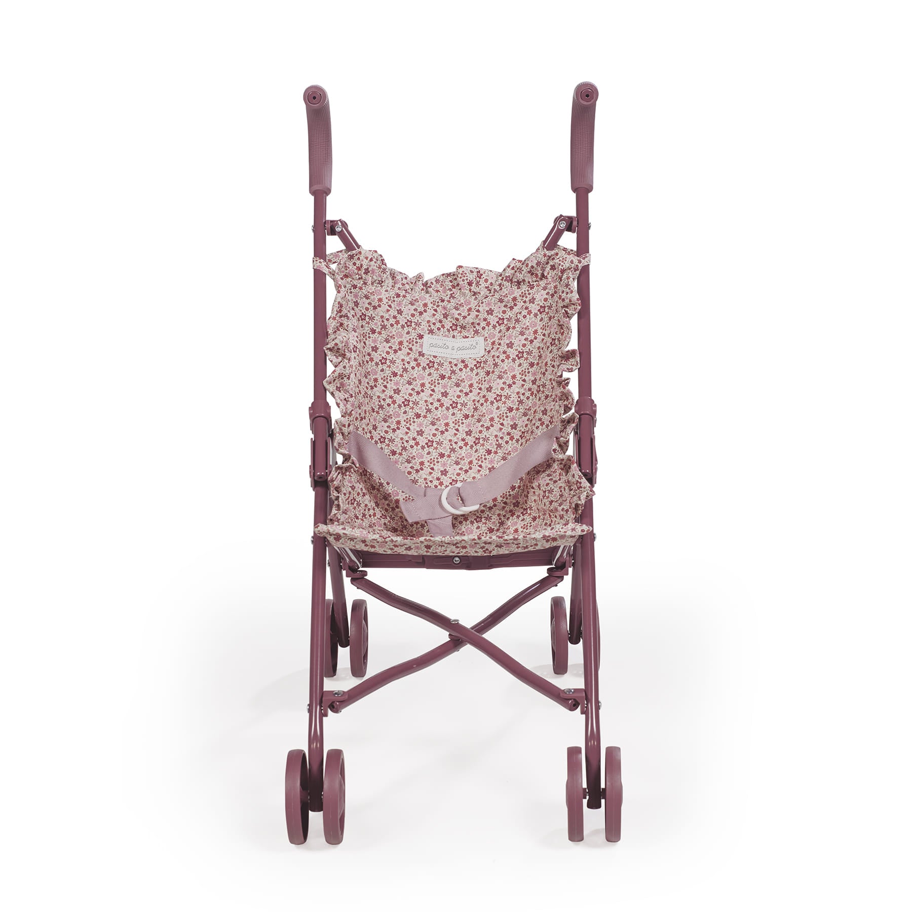 Saca a pasear a tus muñecas con la sillita de paseo Cherry con estampado de flores, plegable con sistema de tijera, muy práctica. Tu primera sillita de paseo, especialmente indicada de 2 a 5 años. Ideal para muñecas de 30 a 42 cm. Estructura de metal lacada en rosa. Se pliega fácilmente y no ocupa espacio.