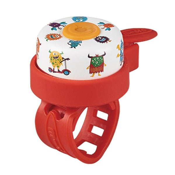 Timbre infantil con divertidos monstruos, ideal para dar un toque original y seguro al patinete o bicicleta de tu peque.