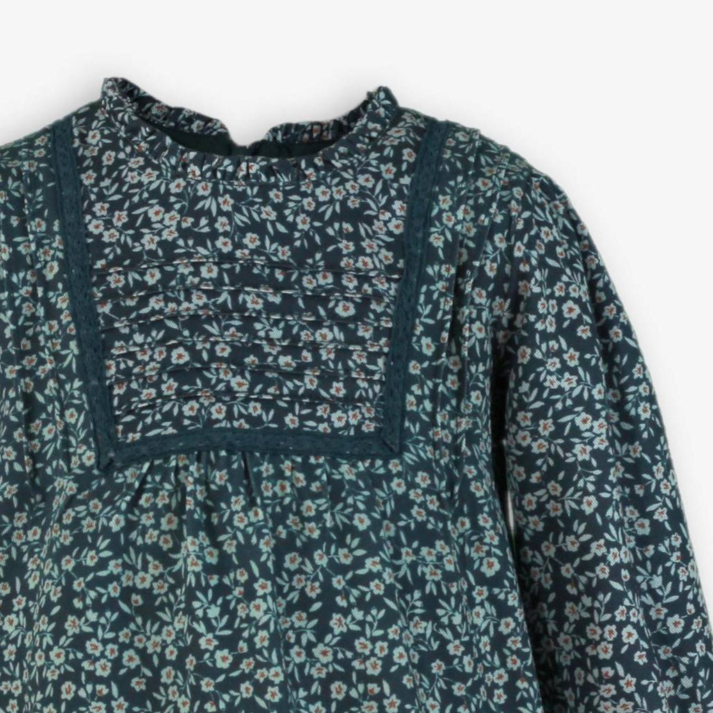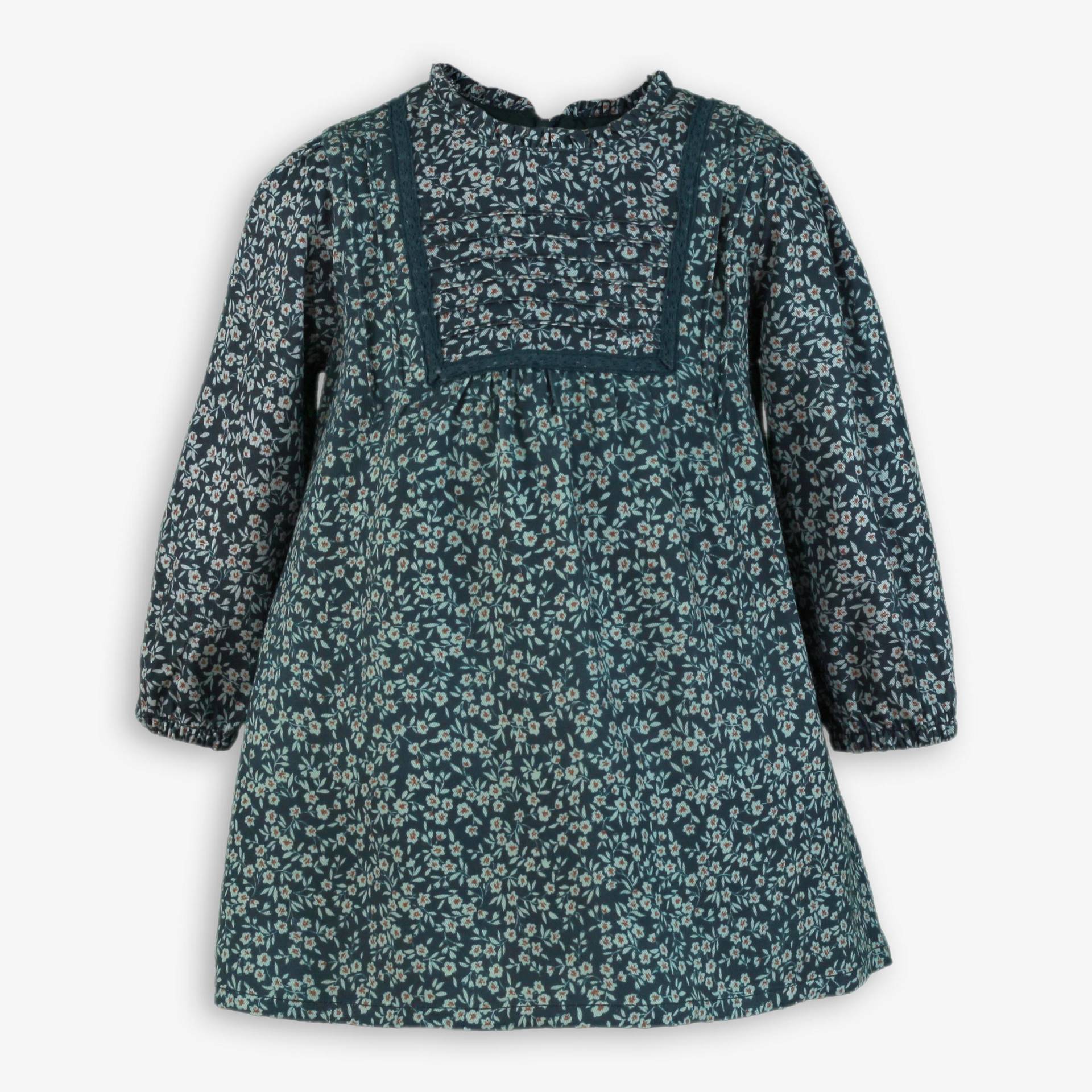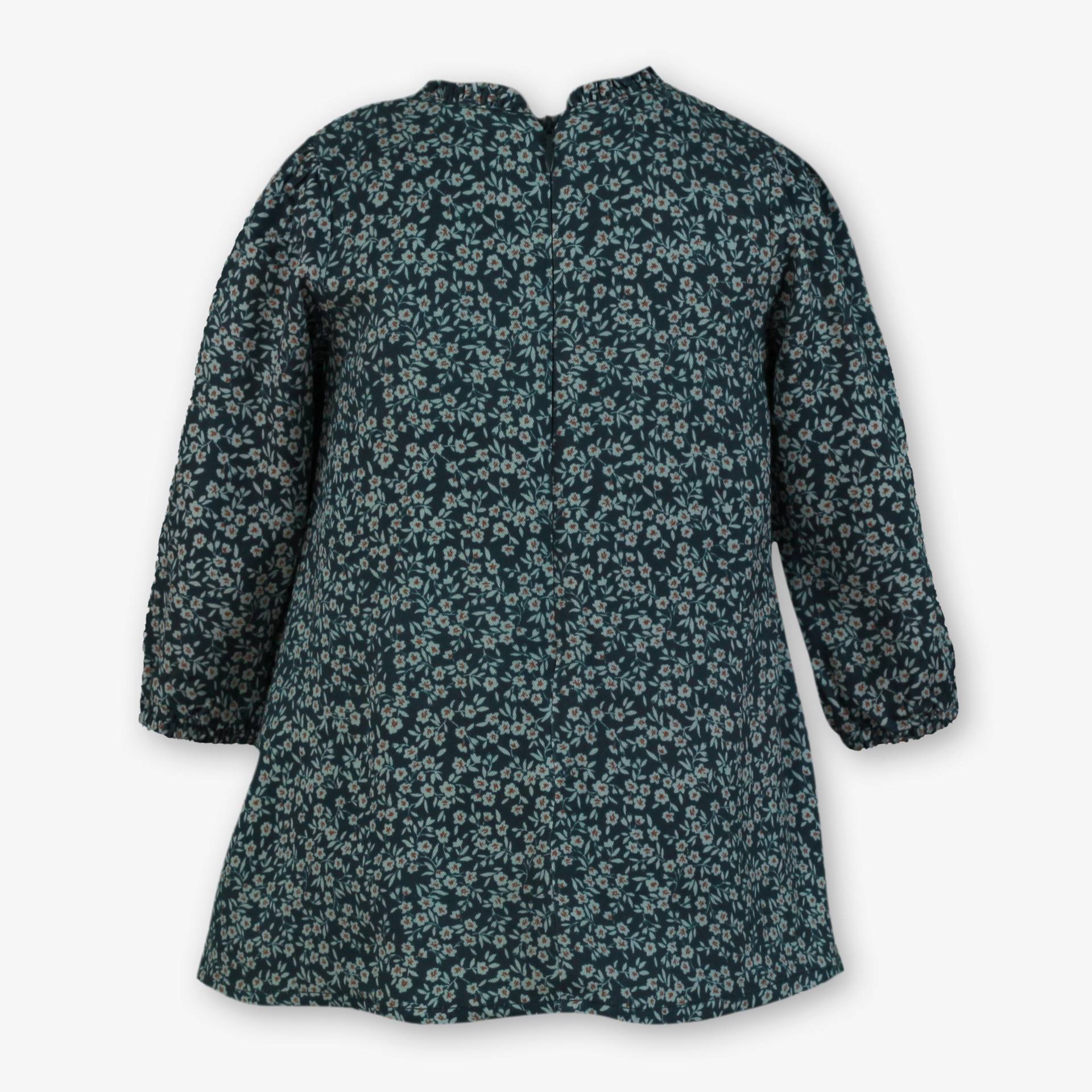 Encantador vestido de manga larga para niña de la marca Miranda. Esta confeccionado en tejido de vaporoso verde. Cierra en la espalda.